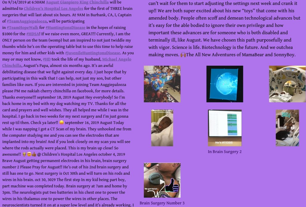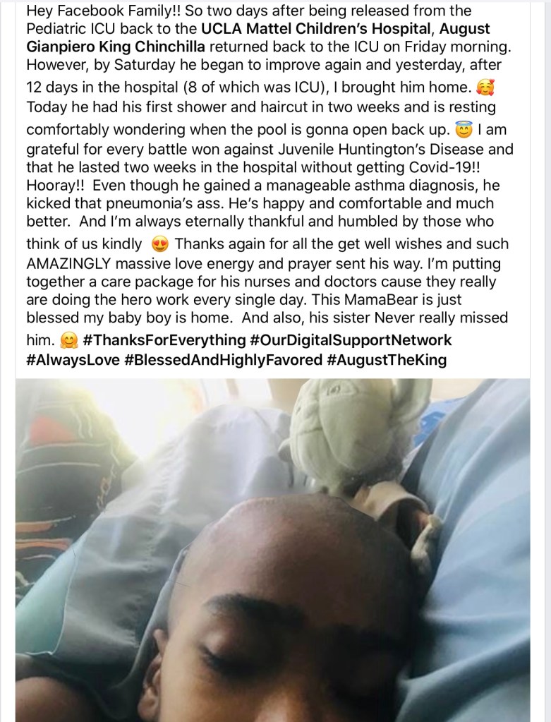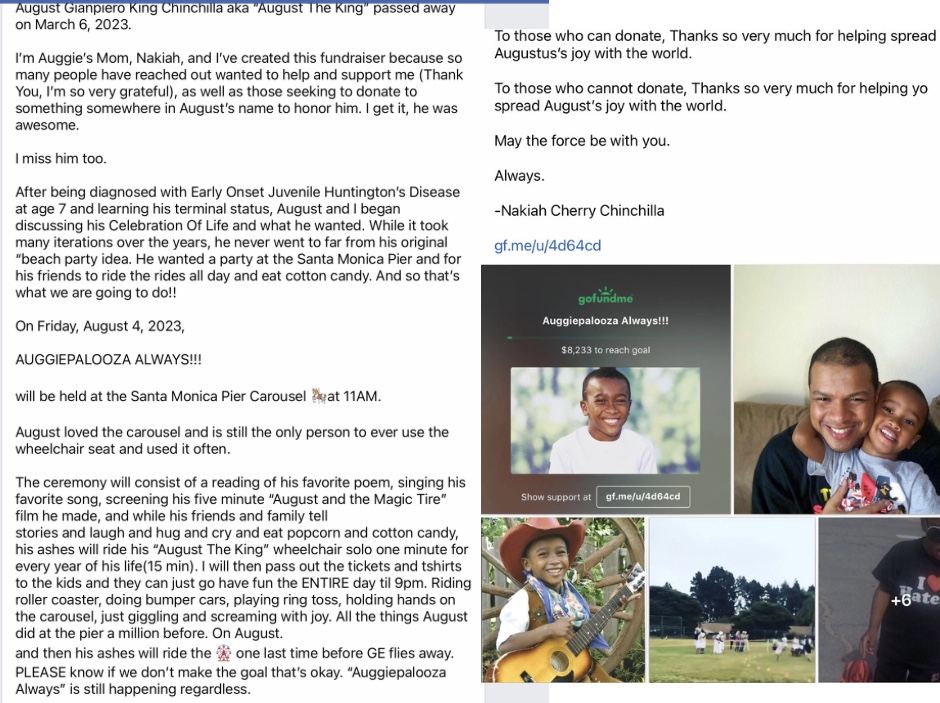 August lived with Early Onset Juvenile Huntington’s Disease, one of the rarest forms of the disease. Currently he was the only JHD elementary kid enrolled in school in the US, he attended a public school in Los Angeles, CA,