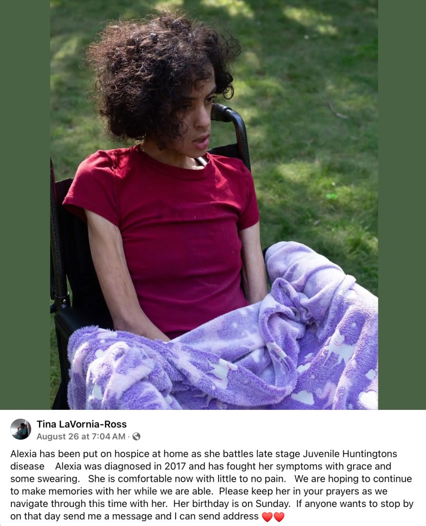 but its a double whammy that she also developed Juvenile Huntingtons Disease.