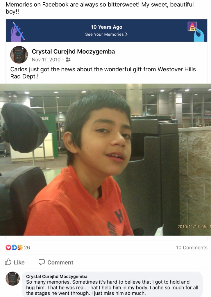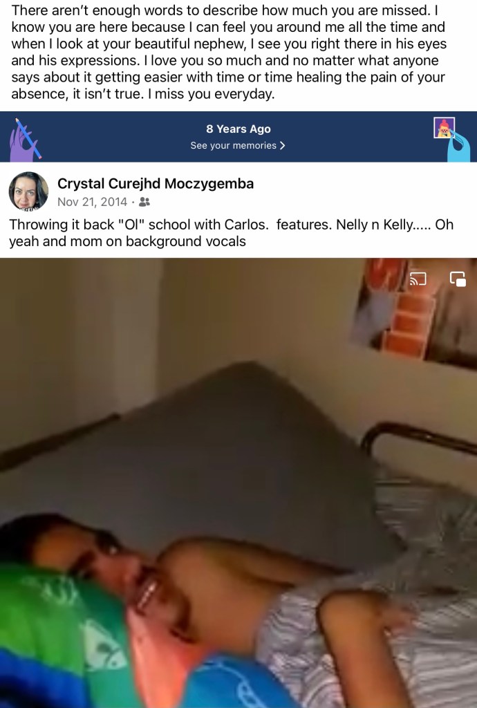 So I’m finally going through my pictures and I find this picture of little Carlos and I just want to cry not because I’m sad but because I remember how he loved his hair spiked up and I would get so happy when he asked me to fix it he looks so cute here with his silver caps and chunky cheeks I miss him like this before we even knew about everything that would come in so greatful for the time and memories I have with this amazing person I call my little brother