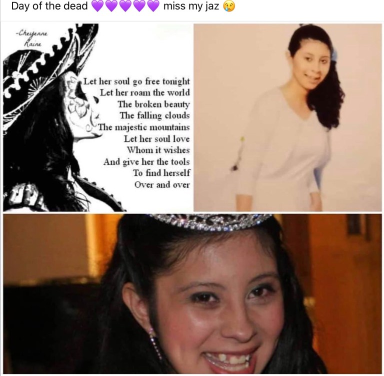 Jasmine was quiet,shy, liked fashion, liked cutting magazines, one direction, reading & her favorite color was purple she was a cowboys fan, bulls & yankees as well. March 29, 1999-December 18, 2019