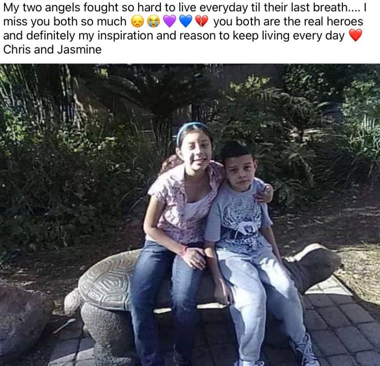 These are my Grandchildren…Since these pictures…Both are in wheelchairs…and can no longer walk or eat or drink alone…Chris needs help to use the bathroom… Jasmine no longer can sit or go to the bathroom . Jasmine is having a very hard time to swallow her food .. Neither can hold their cups. Spoons…My Grandchildren are losing their battle…God Help Them…
