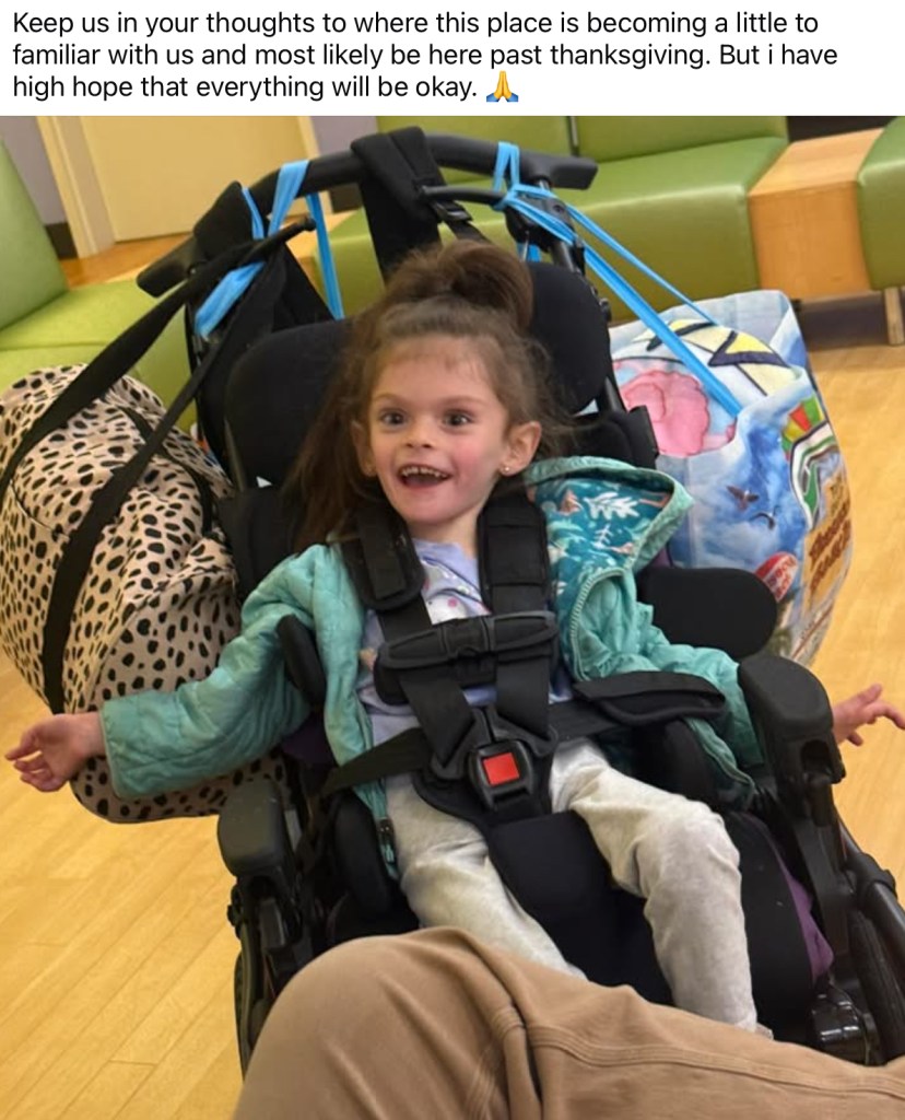 This carseat that the national seating mobility recommends this car seat. With all the additional equipment she needs added to the seat the total cost is $3,500. We are not able to travel right now more then 10 minutes without her being very uncomfortable in her carseat now. She has tremors that constantly makes her makes her move and shes so uncomfortable. We tried everything possible to make her comfortable but the adaptive seat is the route we need to take but with everything else the cost is so expensive. Her doctors are all in Cincinnati and with traveling being so difficult we have made her appointments all telehealth until we can make traveling easier. I know times are rough right now for everyone but I decided to make this Go fund me to help my daughter be as comfortable as possible. Every dollar can help right now and I truly appreciate it! If you cant donate please share.