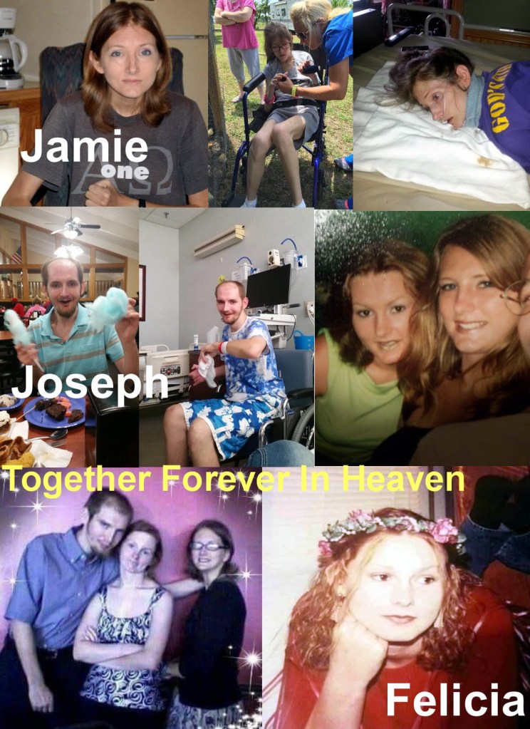 Felicia liked Purple, Jamie Green, and Their Brother Joey Blue, All Bravely Faught Juvenile Huntington’s Disease, They’re All Together Now. Felicia 27 Years Old August 20, 1983-Dec 19, 2010. Jamie 33 Years Old July 23, 1982-August 31, 2015.Joey Was 30 Years Old Jan 24, 1987-August 31, 2017.