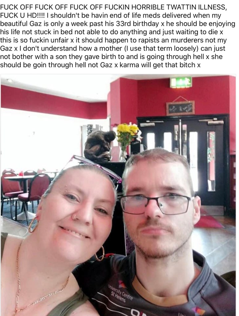 His favorite color was Red. He was born on October 15, 1987-December 6, 2020. He had symptoms before age 19. He’d gotten very stiff. He’s Very Loved. His wife decided to share him with us.