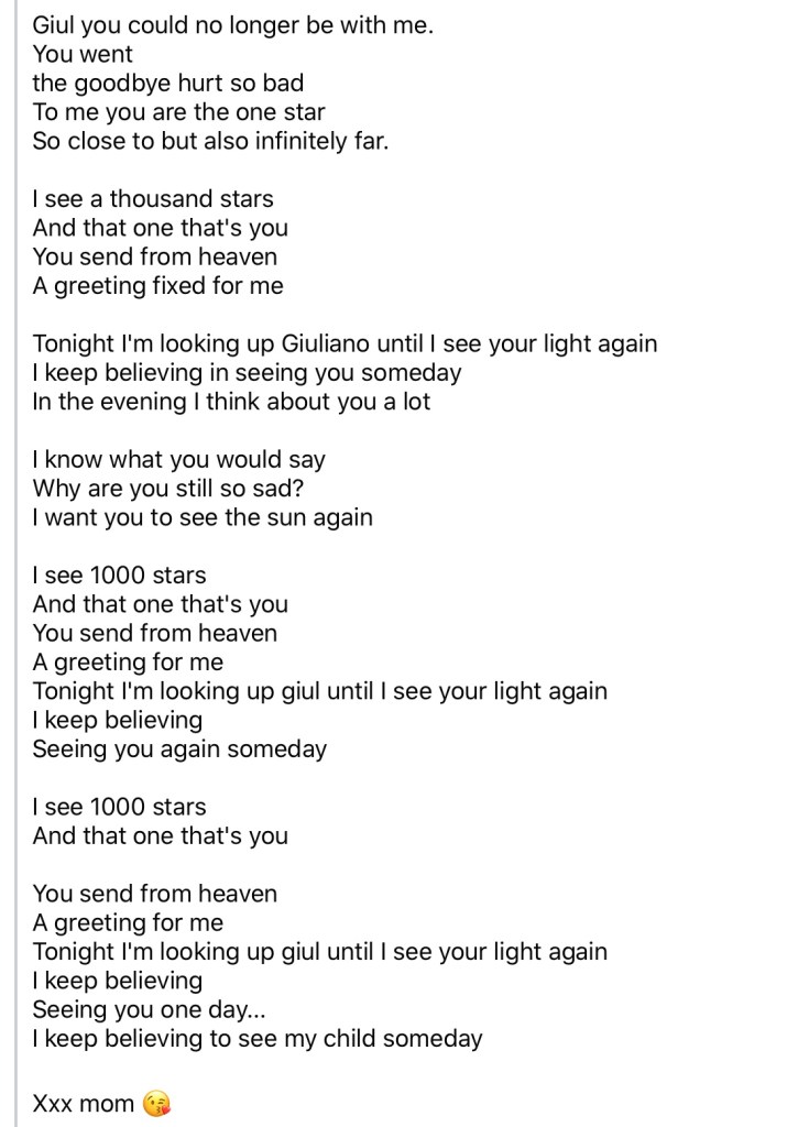 Dear Giuliano your eternal warm smile you always fought valiantly by day rest in peace