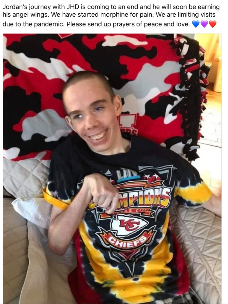 Jordan was born on Sept 6, 1998-April 18, 2020. He was diagnosed with JHD in January of 2013, two weeks after his father passed away from HD. Jordan began showing behavior signs of the disease when he started kindergarten. We were not aware of the behavioral issues associated with the disease at the time. He would chew on his shirt, or bounce around the class room. He moved on to head patting and making strange noises. He had to appear before a judge twice: once for shooting another child with an air soft pistol, and another for assault charges against a special needs teacher. He served community service for the first offense. The judge dropped the charges for the second offense due to his disease. Jordan was able to graduate from high school in 2016.