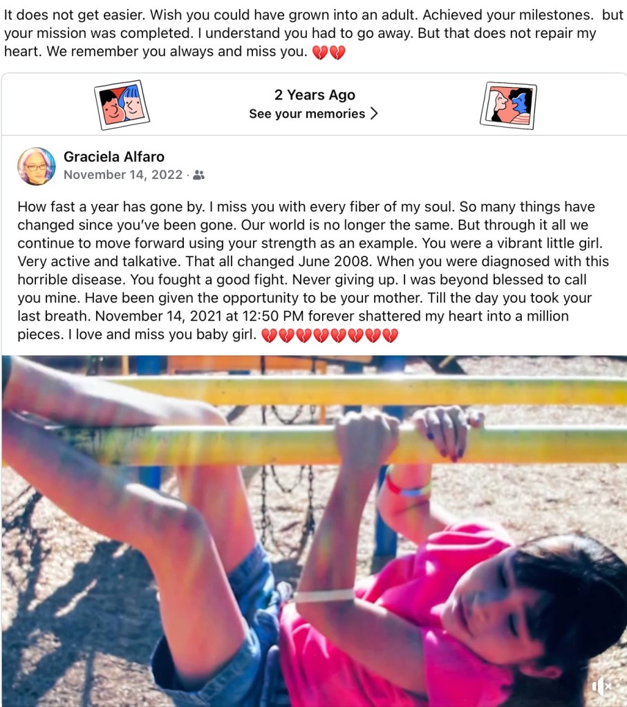 the news that she was positive for JHD. We made every effort to do what she wanted to do. She continued in regular school but was in a special class with her own aid who stayed next to he all day. Then when she was transferred to another school that was 30 miles away. This turned out to be the best thing for her. When Lizzie turned 15 we celebrated with a Quiñcenera. A Mexican coming of age tradition. This was one of her last big events she was able to really enjoy before getting too sick. This is the time that Dad started to become symptomatic. He took the test and confirmed he too had HD. She had a Mic-key button feeding tube put in. After that she slowly gave up eating with her mouth. She had two very bad choking episodes. Then she started dragging her left foot. Then she would lose her balance as she leaned too far forward. She started using a gate trainer. It help for about a year. Then she had to use her wheelchair and finally lost her ability to walk. But this still did not bring her spirit down. She had been a great support for Natalya also. Always there for baseball and dance practice. Even when she had been placed on hospice. We lived our live as they had HD, HD doesn’t have them. July 4th, 1998-November 14, 2021