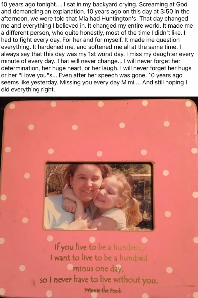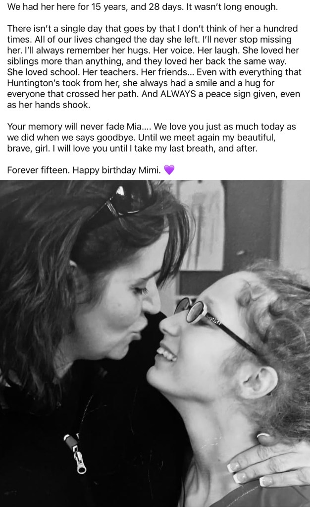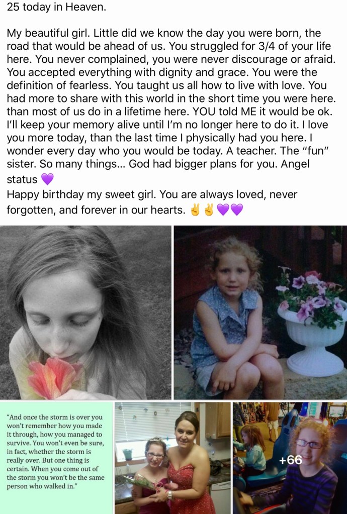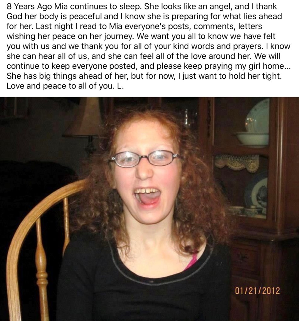 1. Beautiful Mia with a beautiful, brave heart! I am so touched by your family’s story. Hope you find a new care facility that meets all of Mia’s needs. My life was changed by a teenage student with JHD. Sending prayers and best wishes, Sarah